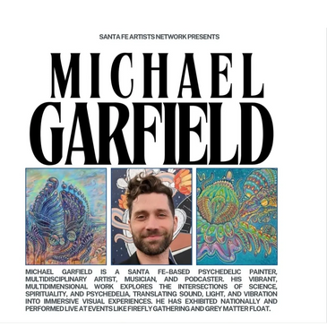 Michael Garfield is a psychedelic painter, scientific illustrator, and multidisciplinary artist based in Santa Fe, New Mexico. His work explores the intersection of science, spirituality, and psychedelic experience, creating vibrant, multidimensional art that invites viewers into alternate realities.